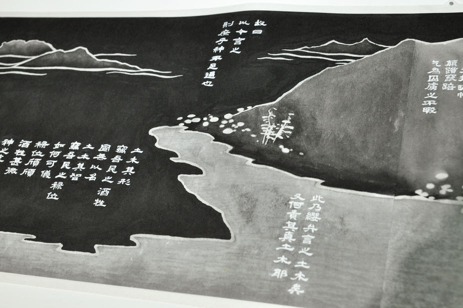 The hand scroll illustrates the journey of Lo Ting, a mythical creature that embodies both fish and human traits, symbolizing the origins of Hong Kongers. It traces his path from Lantau Island to the border. The uninscribed stele stands as a silent witness to the rise and fall of history, representing any type of stele—whether a tombstone or a monument.